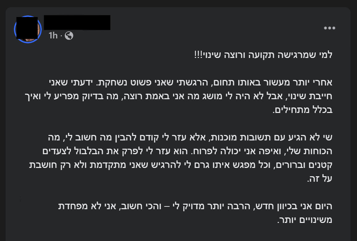 החיים רצופים באתגרים, שינויים, פרידות וצמתי החלטה - בכל גיל. בכל שלב. בכל תקופה. אני מאמין בכל לבי, שלצד הקשיים והתקופות המאתגרות, טמונות בפנינו הזדמנויות יקרות ערך לתקווה, התפתחות, צמיחה וגילוי כוחות פנימיים שהם ייחודיים רק לנו, ושבעזרתם בכוחנו להגשים את החלומות שלנו.שמי שי בורוביץ', מאמן אישי-רגשי בגישה פסיכולוגית וחשיבה יצירתית, מומחה בליווי מבוגרים, בני נוער וילדים בתהליכי שינוי והתפתחות אישית. הגישה הייחודית שפיתחתי מחזקת גמישות מחשבתית שמאפשרת לבחון, להתייחס ולפעול במצבי חיים בדרכים נוספות ושונות מאלו שאנו משמרים, ובכך, לתוצאות והצלחה.ניסיוני כולל עבודה עם יוצרים מהמובילים בישראל - שחקנים, מוזיקאים וכותבים - לצד ליווי אישי של מבוגרים, מתבגרים וילדים המתמודדים עם אתגרי חיים שונים. אני מסייע למתאמנים להתמודד עם תקופות ונקודות של קושי ומשבר, להפוך אותן להזדמנויות לצמיחה, ולפתח חוסן נפשי ובהירות בכל תחומי החיים - בבית, בלימודים או בעבודה. בתהליך האימון אעניק לך כלים שימושיים מותאמים אישית, בעלי יעילות מוכחת להשגת המטרות והיעדים שנגדיר ונציב בדרך להצלחה.
