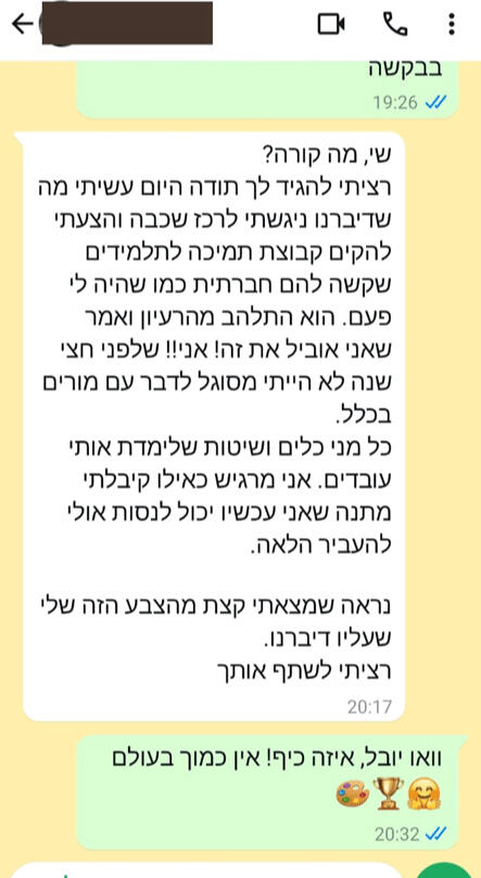 צעד אחר צעד, נאיר את דרך המלך, נחזק את המצפן הפנימי שלך ונפתח את היכולות והכוחות הטמונים בך- אלה שיאפשרו לך להגשים את החלומות והשאיפות שלך.אני מזמין אותך להצטרף למסע של התמרה. יחד נהפוך את האתגרים לאבני דרך, ואת השאיפות להישגים!